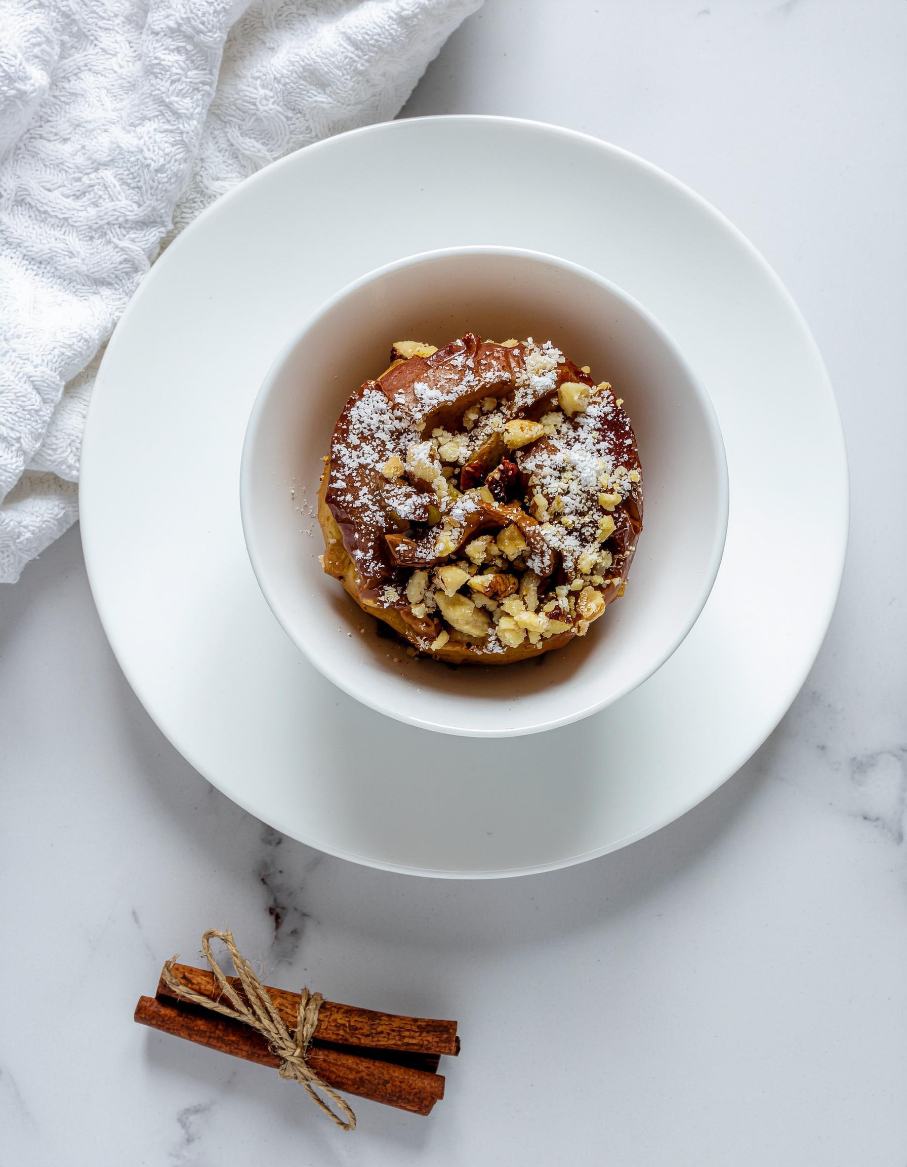 Serveer warm, eventueel met een lepeltje plantaardige slagroom of een bolletje bananenijs. Ook lekker met stukjes peer of een beetje kokosrasp in de vulling.
